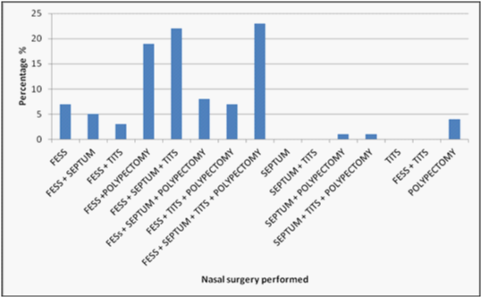 FESS, functional endoscopic sinus surgery; Septum, septoplasty; TITS, trimming of inferior turbinates; polypectomy, nasal polypectomy