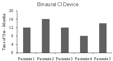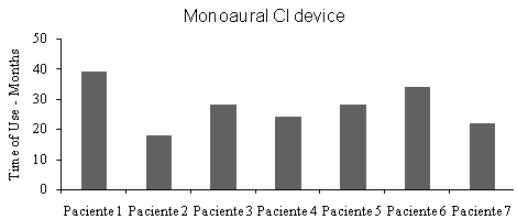The follow-up time of these patients becomes a bias, since the introduction of the Digisonic SP Binaural device is more recent; patients implanted with it had a shorter follow-up. Nonetheless, it was possible to observe that the positive effects of the use of this CI in patients were better than patients using monaural devices.