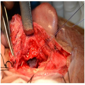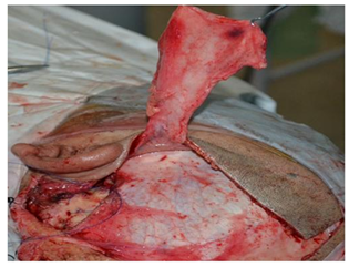 After this a temporoparietal fascia flap is elevated in the sub follicular plane of the skin. This flap is based on the anterior branch of superficial temporal artery (Figure 2).