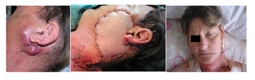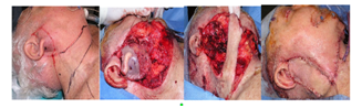 Conclusions: The results of the reconstructions with local and regional flaps of the skin defects caused by the resection of malignant tumors of the ear and the parotid gland were very good, since they allowed the repair of the defect with a good aesthetic result, without the need to perform grafts in the donor area and with few minor complications. In patients with advanced malignant tumors of the ear and parotid gland with infiltration of the surrounding skin, it is better to do the reconstruction with local or regional flaps due to the greater simplicity and speed of the surgical technique, similar aesthetic results and few complications.