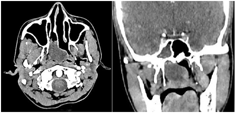 Sphenochoanal polyps have been reported for the first time by Zuckerkandl.5 It is a rare disorder.2 More than 50% of SCPs are observed in children.6 It consists of solitary mass that arises from sphenoid sinus and then towards the choana through its drainage ostium, going through sphenoethmoidal recess occasionally reaching nasopharynx pushing inferior soft palate.1,2