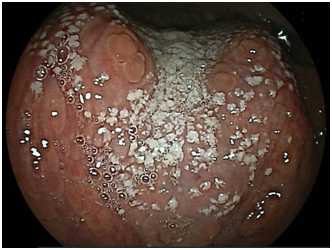The BLI observation mode is useful for acquiring mucosal surface information, including the patterns of the surface blood vessels and structures. The endoscope allows for detailed observations with a close-up view. LCI is a new image-enhanced technology Available for the LASERIO system that makes slight differences in mucosal color tones easier to recognize.11 The LCI mode allows for detailed observation from a distance.