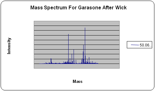 Six 1ml containers with attached lids were weighed, labeled and their masses recorded. A new Microwick was inserted into a plastic sheath which had a diameter of 2mm. The Microwick and sheath were held over an open container and a needle used to apply the solution onto the sheath. The medication was allowed to pass through the Microwick. It was collected with a 1mm diameter glass capillary tube, of known weight and the tube containing the filtered medication was deposited into the container. The cover was applied. The container was re-weighed. The mass of the sample could then be calculated. This process was repeated five times. The samples were taken to our University Chemistry Department. The samples were diluted, exactly the same amount with methanol, to enable the mass spectrometer to process them. Then 10µL of each sample was run through the mass spectrometer and a mass chromatogram was produced. Six mass chromatograms of the pure, unfiltered medication were also produced.