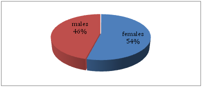 Fourty eight consecutive patients of with the diagnosis of thyroglossal cyst were managed from sep 2012 to oct 2014 in the department of Otolaryngology, pt. B D Sharma PGIMS Rohtak. Tweentey six (54%) were females and 22(46%) were males (Figure 1).