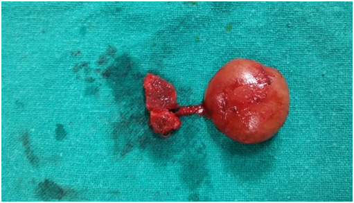 Here we describe the distinct advantage of sistrunk operation with modified incision that was given at upper pole of cyst. It allow the surgeon to achieve and maintain an excellent operative exposure and view dissection of hyoid and foramen ceacum, enblock removal of specimen and less operative time (Figure 8) Additionally, post operative followup of these patient revaealed better cosmetic results, as scar is lying high, even not visible or merge within langers line. There was statistically significant difference in recurrence rate in sistrunk procedure as compared to sistrunk procedure with modified incision.
