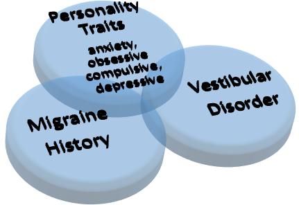 Investigators as long ago as the 1880’s have written about the overlay of psychological manifestations with patients presenting to physicians with complaints of dizziness or spatial disorientation.1 A progression or worsening of symptoms may be more likely based on the patient’s personality and psychological state rather than an organic vestibular condition or disorder. Table 1 presents an historical overview of the various labels ascribed to these conditions as well as the investigators and year of publication. In the recent past, newer labels have been given to these conditions, as greater understanding of their nature has been examined. These conditions may have a genesis ranging from well-established organic disorders such as vestibular neuritis to an unexplained collection of symptoms without a definitive onset or causation. Figure 1 depicts the most commonly associated co-morbidities with manifestation of internalized motion and subjective dizziness. Patients who present with seemingly odd, non-vestibular like onset and complex symptoms, with unknown etiologies often have histories including; migraine, anxiety, obsessive compulsive disorder (OCD), histrionic and somatoform personalities.