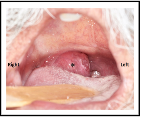 Figure 1 An example of unilateral swelling of the right tonsil – the eventual diagnosis in this patient was Lymphoma.