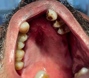 Figure 3 Intraoral view showing incomplete cleft palate, generalized periodontitis, and multiple missing teeth.