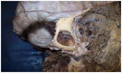 Figure 2 Cadaverous dissection, lateral view showing sigmoid section of the lateral sinus in a mastoidectomy.