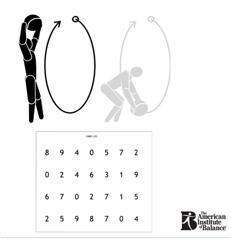 Figure 4 One of the selected exercises for the patient based on his vestibular complaints of oscillopsia with active head rotation and body movements as well as his cognitive complaints of digit memory. During this exercise the patient would make a circle pattern of movement with his body and head while focusing on a ball with a cue card attached, or with the cue card alone, in addition to performing a forward/backward digit memory task.