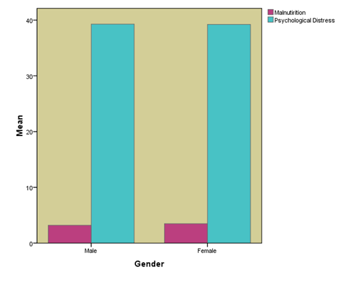 Finding indicates in Table 4 that significant differences were founded among male and female adults on malnutrition and psychological distress. Finding depicts that female adults score high on malnutrition and psychological distress as compare to male adults. Hypothesis of current study accepted (Figure 1).