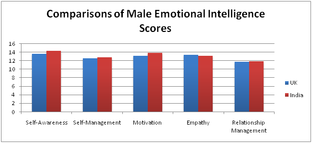 Chart 3 Emotional Intelligence score differences between Male United Kingdom and Indian teacher practitioners.