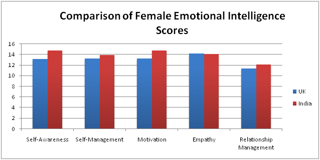 Chart 4 Emotional Intelligence score differences between Female United Kingdom and Indian teacher practitioners.