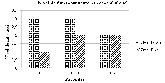 The Psychosocial Functioning Scale instrument was used,1 which serves to evaluate the treatment and finally, describe the results of patients treated by the same researcher.