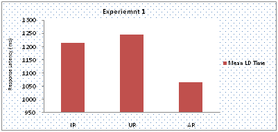 Figure 3 Mean response latency (ms) as a function of the attended repetition (AR), the unrelated (UR), and the ignored repetition (IR) conditions in Experiment 1