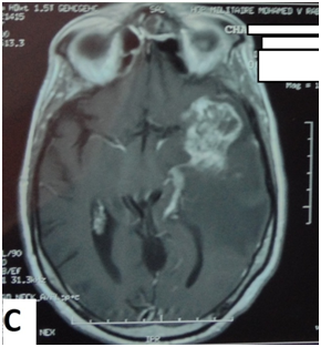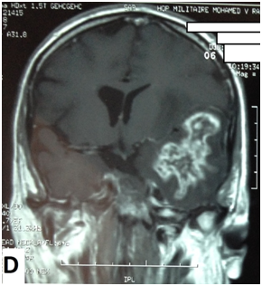 Conclusion: We learn that cognitive decline may be the revealing symptom of cerebral radio necrosis. In this case, MoCA test showed more sensitivity. Thus clinician must bear in mind the risk of cerebral radio necrosis (CRN) as much as metastatic or recurrent brain tumor in such situation. The MRI with specific pattern could help in distinguish these entities. Corticosteroid associated to hyperbaric oxygen and anti-platelets improve the course of CRN. The use of promoting agent anti-VEGF Bevacizumab should be clarified by more prospective studies.