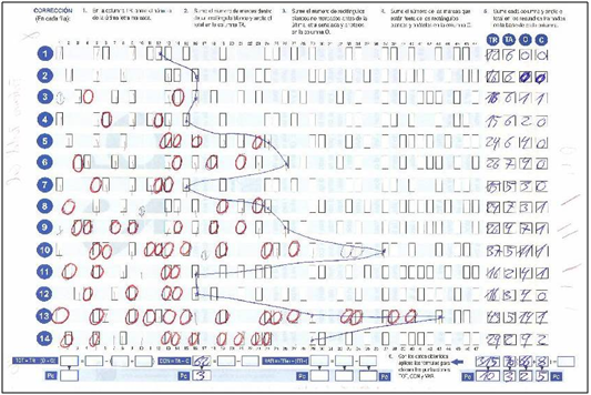 In the Verbal Memory Test (TAVEC), it achieves a medium-low performance in the processes of coding, storing, retrieving and evoking verbal information. This is reflected in a low-average performance in most of the test indices (free recall, learning curve, discrimination, recognition) and that is manifested in a reduced active recovery of information through the use of learning strategies. On the other hand, in the recognition test it obtains a medium-low score (-3sd), indicative of difficulties of access to information through associative recovery processes (keys) (Table 5).