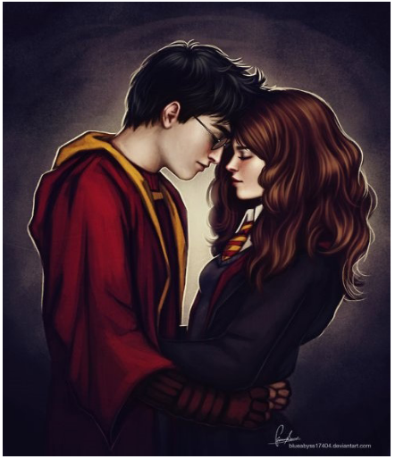 S. talks about how they are alone in the world, nobody understands them. There are a few yellow flowers, but only a few. They are stick figures, no body to them. Also they are not touching – no real contact. She talks about how alone she feels, not even her boy-friend is close to her. It is interesting to note that when S. is happy in the relationship, the figures have bodies and clothes. When she is frustrated and feels threatened, her figures are not fully drawn or dressed. A month later, when S was feeling better about herself she found an entirely different kind of picture to describe herself and her boy-friend. In a picture that S brought from the internet she found figures that are colorful, together and happy. She made a copy that is big, not the size of the stick figures. Also these figures are from Harry Potter and so have an element of magic about them. Everything is possible.