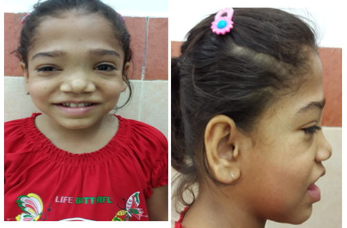 Deletion of the short arm of chromosome 18, del (18p), is now a well established chromosomal aberration. The female to male ratio is 3:2 with incidence around 1 in 40000 live birth. The most frequent abnormalities consist of mild to moderate growth deficiency, mental retardation, microcephaly, ptosis, epicanthal folds, low nasal bridge, hypertelorism and large protruding ears. Holoprosencephaly and clinodactyly of the fifth finger is observed in about 10% and 20% of the cases respectively. Recent evidences have suggested an association with growth hormone deficiency that responded well to hormone supplementation.2 Mental retardation is mild to severe with an average intellectual quotient (IQ) between 45 and 50. There is a significant discrepancy between verbal and non-verbal performance, verbal performance being more severely affected.2−4 Most cases of deletion 18p are supposed to originate from de novo deletions, which accounts for 85% of cases.5 The disorder is usually diagnosed or confirmed after birth (postnatally) based upon a thorough clinical evaluation, detection of characteristic physical findings, and chromosomal analysis. The treatment of Monosomy 18p is multidisciplinary including pediatrician, neurologist, speech therapist and pathologist. The specific surgical procedures performed will depend upon the severity and location of the anatomical abnormalities, their associated symptoms, and other factors. Early intervention may be important in ensuring that affected children reach their potential. Genetic counseling will also be of benefit for affected individuals and their families.