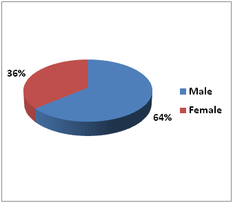 Male were predominant (64%) and male female ratio was 1.77:1 (Figure 3).