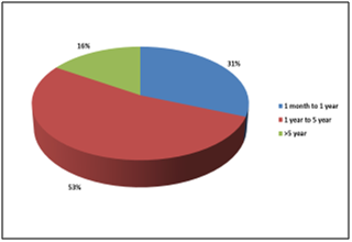 Among the cases 31% were 1month to 1 year of age, 53% 1 year to 5 year and 16% were >5 years of age (Figure 4).