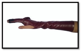 The post-test shows that the abnormal maximal tone significantly reduced MAS, and improves the score of M-JTHFT as shown in the Table 1. In sample 1 donning-doffing was easy due to the attachment of zipper. But ineffective pull of zipper hampered optimum functioning. Hand function was easy with the hand in functional position but loose fitting design hampered appropriate prehension. In sample 2 independent finger movement was possible with significant control of stereotypic hand movements. But absence of zipper made it difficult to put on. In both design perspiration was a common problem and stitching of the desired pattern was difficult. Both the samples were tried during functional movements like holding and placing of wooden pegs, turning objects and/or blocks, writing practice on papers etc. to observe the effectiveness of the splint.