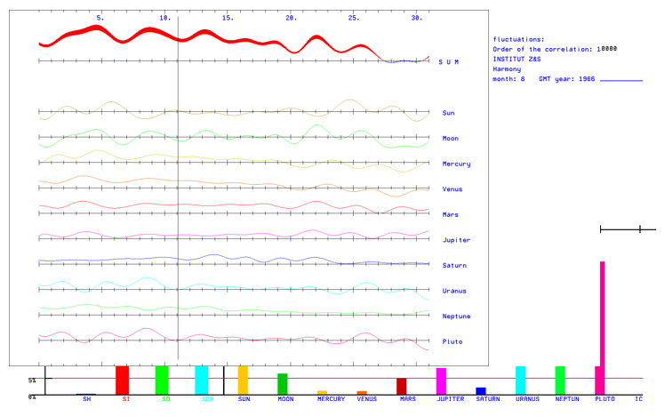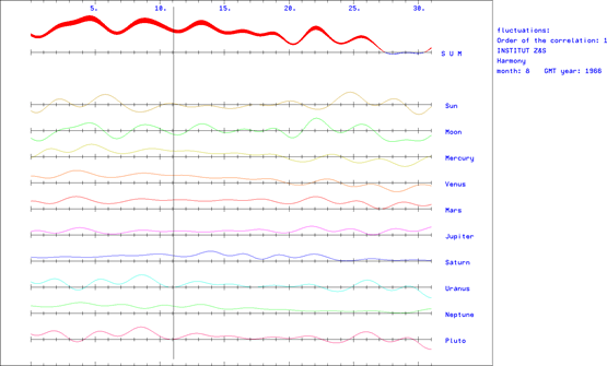 The angles a are calculated according to the astronomical algorithms of Jean Meeus.4 The 1st order correlation function is shown in Fig 4. It represents a first approximation for the study of the influence of cosmic fluctuations on the stable and unstable states of complex systems.