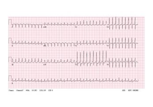 A 3-week-old male newborn with tachycardia was referred to the neonatal intensive care unit at Jeju National University Hospital (Jeju-do, South Korea). He was born with a birth weight of 3.5kg at 37 weeks of gestation via spontaneous vaginal delivery. His mother had no history of medication during pregnancy. There was no perinatal history of fetal arrhythmia or fetal hydrops. At admission, the initial heart rate was 250 beats per minute, and the blood pressure was within the normal range at 86/51mmHg with a body temperature of 36.3°C. He had mild chest retraction with tachypnea at a respiratory rate of 70 beats per minute and pulse oximetry saturation at 94% in room air. On chest X-ray, there was no active lung lesion without cardiomegaly. Two-dimensional echocardiography showed no congenital structural disease. A 12-lead electrocardiogram demonstrated the Supraventricular tachycardia with a narrow QRS (Figure 1). Three intravenous injections of adenosine (0.1,0.2,0.3mg/kg) changed the state to transient bradycardia with rapid recovery of supra ventricular tachycardia (Figure 2). In addition, we performed direct-current electrical cardio version (0.5–1J/kg) and intravenous amiodarone infusion two times with the loading dose (each 5mg/kg), followed by a maintenance dose, that could not convert the state to a normal sinus rhythm; thus, Supraventricular tachycardia had persisted. On the following day, Verapamil (0.075mg/kg) was slowly administered intravenously over 4 min with a transient decline of the heart rate to 170 beats per minute, but Supraventricular tachycardia returned with a rapid heart rate increase to 230 beats per minute. A second dose of Verapamil (0.15mg/kg) with a 20 min interval time was administered without a response.