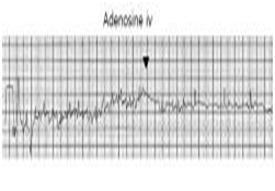 Figure 2 An intravenous injection of adenosine (black triangle arrow) led to transient bradycardia with abrupt recovery to supraventricular tachycardia.