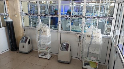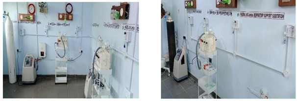 The design of the substation was crafted to ensure an uninterrupted neonatal life- support delivery in the recipient centres. Two or three units of the politeheartCPAP device were installed in each of the four chosen hospital SCBUs. A small corner or section of the existing Neonatal Intensive Care Unit (NICU) or SCBU was specifically modified to accommodate the substation’s other supplementary technologies, including (i) four ports capacity polite-oxygen splitter system (PSS) which functions to multiply the utility of available medical oxygen by up to 700%8 (ii) 10 LPM capacity oxygen concentrator (iii) one set of 6m3 capacity oxygen cylinder with regulator (Figures 1–5).