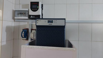 The oxygen concentrator is used during sunshine, powered by solar energy, while the oxygen cylinder is applied during sunset, all discharging into the PSS for oxygen distribution across its four ‘service ports’ where the neonates are connected via the politeheartCPAP devices. The substation is separately equipped with an independent solar sub-power alternative delivering 4 KVA with 2400 watts gang of solar charging panels. The substation is exclusively hooked unto the automatically operated mini sub- power station (Figure 4), ensuring that the substation never shuts down even during total blackout of the main hospital mains facilities.