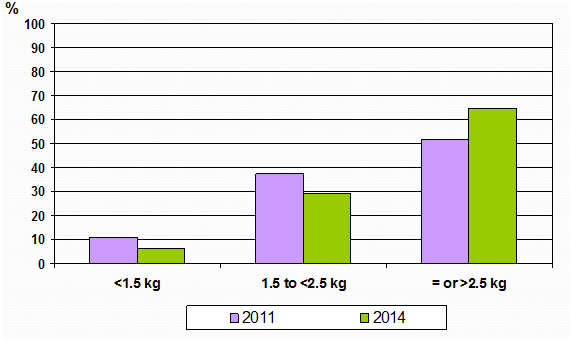 Figure 3 Admission body weight of neonates (%): 2011 & 2014.