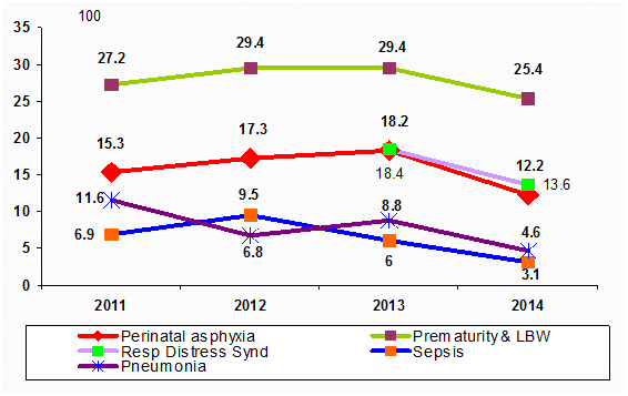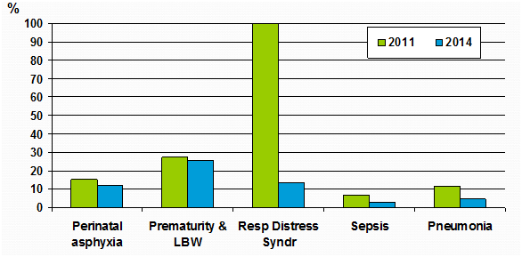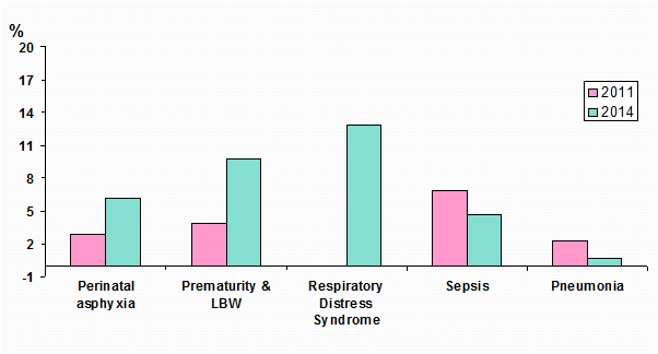 Figure 4 Causes (%) of neonatal admissions: 2011 & 2014.