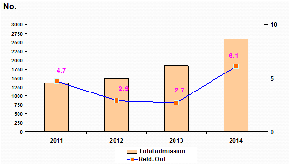 Figure 10 No. of admissions and % of neonates referred out: 2011-2014.