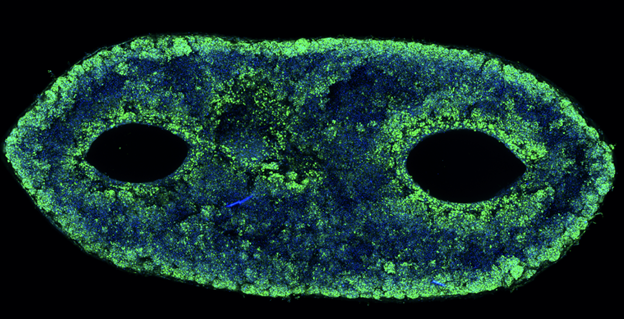 Figure 9 Microscopy image of the vascular channels within the adipose tissue bioprinted by Wyss Institute.53 Shows engineered vascular networks critical for sustaining tissue viability in bioprinted implants.