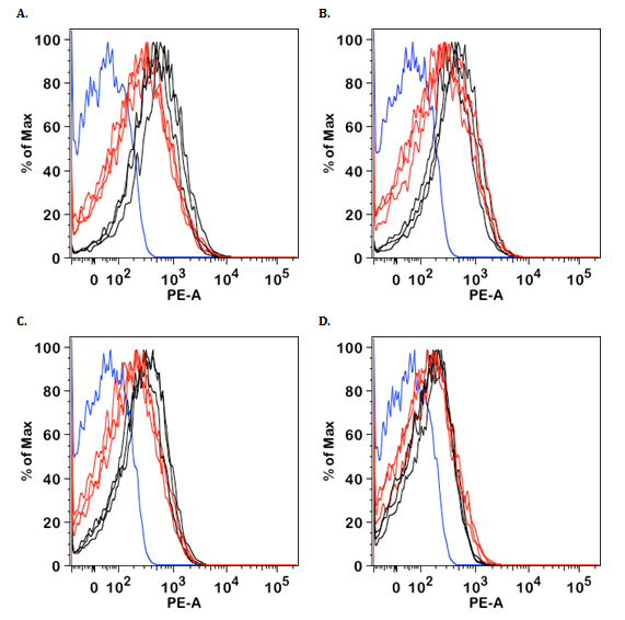 Red cells from A1 and A2 donor segments identified from hemagglutination testing (above) were washed three times in flow cytometry buffer. The washed cells were counted in a hemocytometer (Hausser Scientific, Horsham, PA). A volume corresponding to 5x106 erythrocytes from each donor was suspended in 100mcL of flow cytometry staining buffer and incubated at 4°C for 30 minutes with A antibody (Immucor, Norcross, GA) diluted 1:20, 1:40, 1:80 or 1:160 in PBS. The A antibody was subsequently removed with 3 sequential washing and centrifugation cycles (at 3,000xg for 3 minutes at 4°C). The washed cells were re-suspended in approximately 100mcL of flow cytometry staining buffer and incubated with 30mcg of R-Phycoerythrin-conjugated mouse antibody (Jackson Immuno Research Laboratories, West Grove, PA) at 4°C for 30 minutes in the dark. After incubation, the cells were washed 3 times in flow cytometry staining buffer and then analyzed on an LSR II flow cytometer (BD Biosciences, San Diego, CA). Histograms were constructed using FlowJo software (Treestar, Ashland, OR).