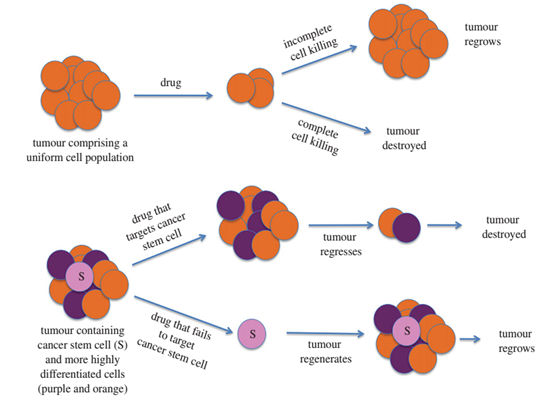 Given that at various stages of maturation, tumors contain heterogeneous populations of cells and also the properties of normal stem cells shared by cancer cells led to the speculation that tumors may contain a cancer stem cell population that drives the growth of the tumor.4