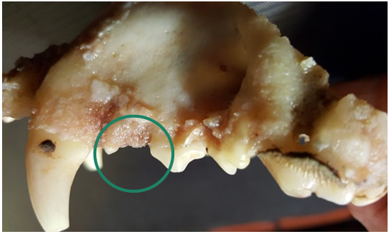 Figure 2 Dog’s right upper jaw where multipotent mesenchymal stem cells (MMSCs) was introduced with subsequent tooth regeneration.