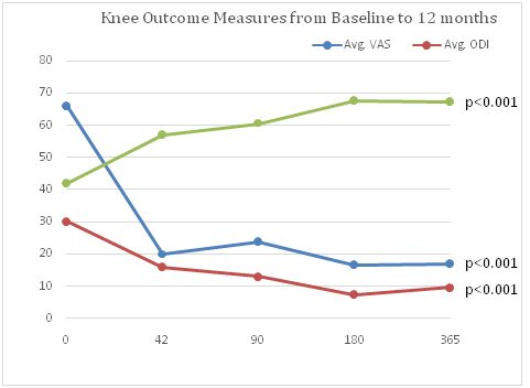 Figure 3 Patient progress versus time after BMC injection into the Knee: Average (Avg.).
