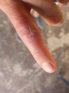 After the medical procedure applied in hospitalization and together with the follow-up at the patient's home, it is concluded that the diagnosis and treatment during hospitalization and discharge of the patient was effective, since the area healed completely without subsequent complications. The patient only reports some difficulty in bending his finger inward, possibly due to temporary damage to the tendons caused by cellulitis.
