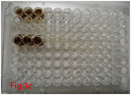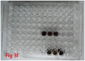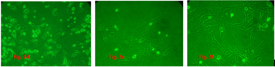 3-(4, 5-dimethylthiazol-2-yl)-2, 5-diphenyl tetrazolium bromide (MTT) was used to assess the number of proliferating cells. Mitochondrial dehydrogenases present in the live cells will reduce MTT. Third passage cells were plated in a 96 well ELISA plate at a cell concentration of 1×104cells/well with the addition of complete culture media and kept in an CO2 incubator at 37°C with 5% CO2 for 0, 3, 7 and 14days. After incubation 20µl MTT (5mg/ml) was added to each well and incubated again for 4hr in CO2 incubator. At the end of incubation media was removed gently without disturbing the monolayer and was dried for few minutes. 150µl of DMSO was added to each well and mixed without formation of air bubble to dissolve formazan crystals. Absorbance was recorded at 570nm in an ELISA reader. DMSO was used as blank for the experiment (Figure 3C-3F).