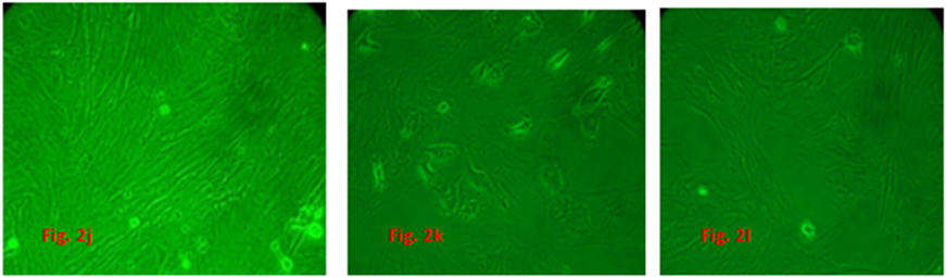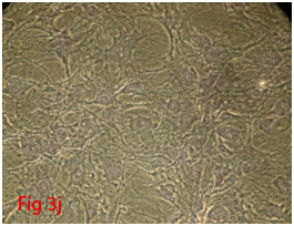 Mesenchymal stem cells are an attractive tool for therapeutic application due to its self-renewal capability. They are main source for tissue repair, tissue engineering and vehicles of cell-based gene therapy.5 Stem cells have been isolated from different types of tissues. Mesenchymal stem cells can differentiate into several tissue-forming cells such as bone, cartilage, fat, kidney, liver, tendon, muscle, heart and even brain cells.6 Although MSCs from human bone marrow are easy to harvest, the isolation of rodent MSC is much more difficult.7 The self renewing capacity and ability to differentiate into various functional cell types makes the mesenchymal stem cells an attractive and efficient tool for the field of regenerative medicine. Their homing ability and non immunogenic nature enhance their therapeutic usage. Bone marrow derived mesenchymal stem cells were isolated by density gradient centrifugation and their plastic adherent property was used for expansion. After initial seeding, the flasks were observed every three days. In the beginning cell population were rounded in shape. After three days cells got attached and those non adherent cells were removed by decanting the media. Supplementation of media was done at three days interval. Gradual change in the morphology of cells could be observed (Figure 2A-2J). Cells slowly changed into spindle shape. By 18 to 21days P0 flask became confluent and was passaged with 0.25% trypsin EDTA solution. Addition of trypsin detached the cell monolayer and cells became rounded again. Centrifuged cell pellet was seeded into T75 flask. Third passaged cells were used for differentiation studies. After 18-21days of culture, the P0 flask (T25) became confluent which was further expanded by trypsinization. Thereafter, cells attained confluency within 4 to 5days. P3 cells were used for in vitro studies.