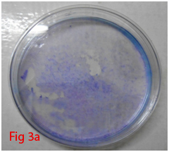 A 100mm tissue culture dish was plated with cells at a concentration of 2cells/mm2. Culture dish was kept in a humidified chamber at 37°C with 5% CO2 and maintained up to 14days. At the end of assay, DPBS was used to wash the dish and fixing of cells was done with methanol for 5minutes. Cells were then stained with Giemsa stain for 30minutes. Finally, plates were washed with DPBS, dried and colonies were counted. Faintly stained ones were ignored.
