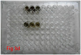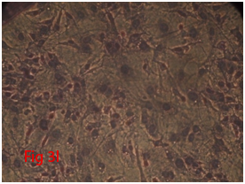 Counted third passages cells were seeded in 24 well culture plate with a cell concentration of 2×106cells/well. When the cells attained 70-80% confluence, Osteogenic differentiation media (Stempro) was supplemented into four wells where as negative controls were supplemented with complete media. At weekly interval media was changed and culture was maintained up to 21days. By alizarin red staining, calcium deposition was evaluated to assess the differentiation potential of cells.