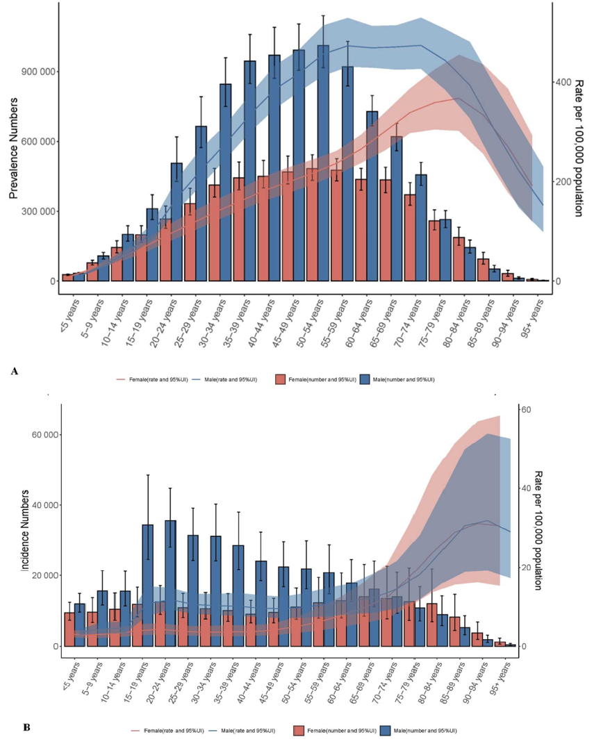 Figure 5 Age-sex correlation in SCI in 2021 in men and women.