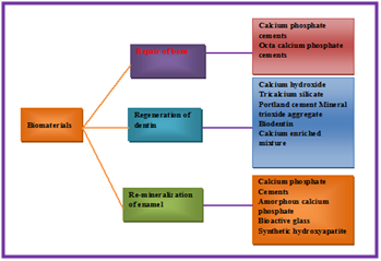 Figure 3 Showing use of calcium phosphate as biomaterial in repair of bone, regeneration of dentin and remineralization of enamel.
