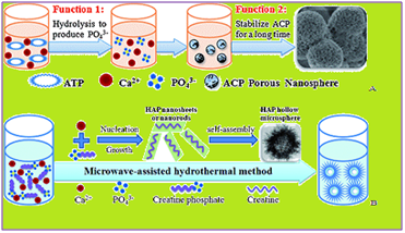 Figure 6 (a) showing formation of porous ACP nanospheres (b) formation of HAP nanosheets or nanorods by using microwave assisted hydrothermal method.