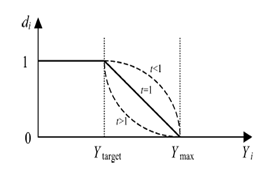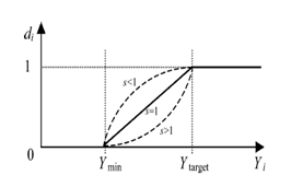 Simultaneous optimization using the desirability function technique is recommended tool.22,23 It is based on the idea that the ‘quality’ of a product or process has multiple quality characteristics.24 The desirability approach, proposed initially by Derringer & Suich,20 seems very promising for optimizing simultaneous response variables, besides being easily performed 24. The general approach consists in first converting each response variable into a desirability function di, that varies from 0 to 1.25 The factor levels that take to a maximum or a minimum of the response variable are called ‘optimum points’.