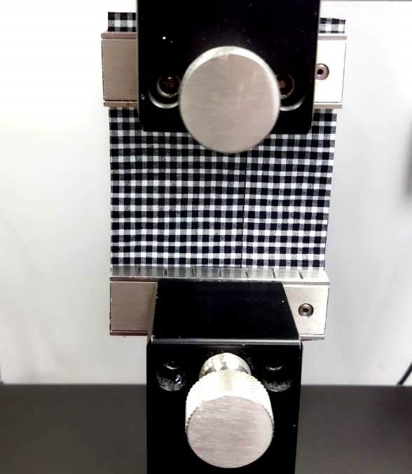 Tensile strength of the fabric was measured in agreement with the test method provided by ASTM D1424 standard. This test method states a process to define the maximum force and the elongation at maximum force of clothes applying a grab method. Grab test is a type of tensile test where only the middle part of the sample is riveted in the jawline surfaces. 3 set of samples are made, one in the warp way and another in the weft way. The test samples should be allotted haphazardly in equivalent numbers to the instrument for experimentation. The two parts of the samples are clamped with 2 jaws and then started experimentation. The samples started to destroy due to pressure from hydraulic jaws and the values are shown in computer monitor and placed in Table 4. Figure 4 shows the tensile strength measurement process of fabrics.