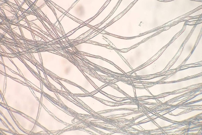 Yarns were unplugged from fabrics and microscopic views were taken. Figure 5 shows the microscopic views of the yarns. In this view we can see that the cell wall of a cotton fiber comprises of a primary and a secondary wall. The second that contains the bulk of the fiber, contains of numerous spirally sloping cellulose fibrils surrounded by a windy that creates a spiral, but in the contrary path from the previous.